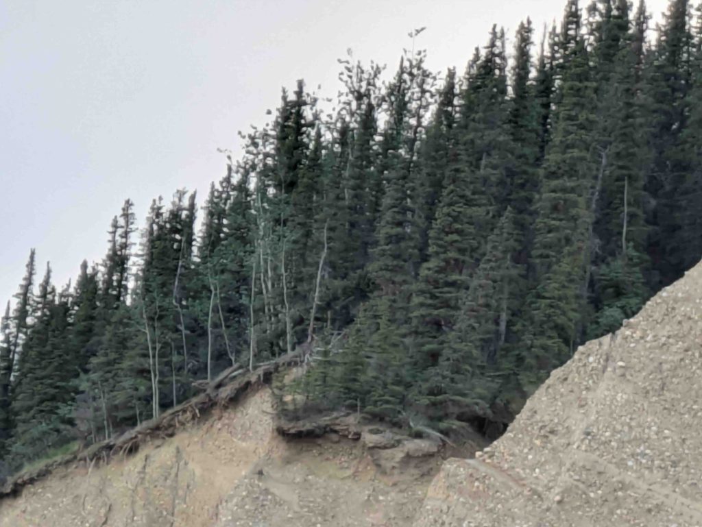 In the next stop, we were at the base of a large sand dune formation – it seems a few years earlier, a part of the sand dune had fallen and cut off access to this area. They pointed to some trees at the edge of the dunes on top.