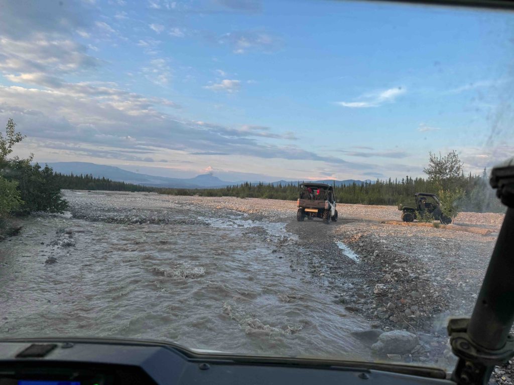 Our ATV site was in a town called Healy, which was about a 15-minute drive. Around 8:15 pm, we headed out; our start time was 9:30, but we figured we could check out Healy, since the shops in Denali were closing at 8. Healy is further north from Denali (so it’s Cantwell and then Denali and then Healy). It was a short scenic highway ride.