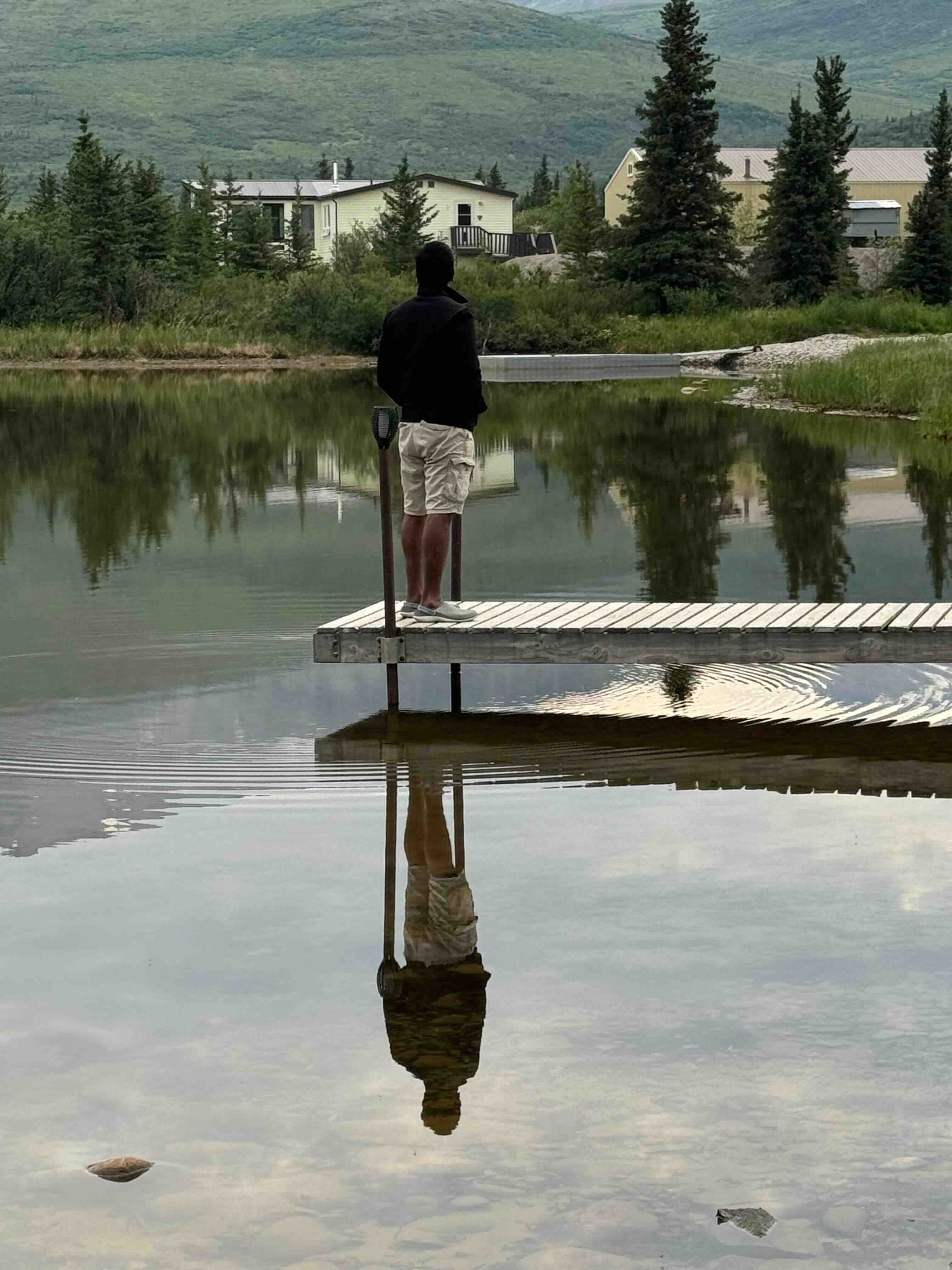 Seemed like a property with a bunch of rooms – couldn’t see any name board though. And didn’t seem like people were around inside. We talked in a low voice and stayed on. Later, I did find that this was a small hotel – an inn- and it is a place from where you could see the Northern lights above this lake (the Otto Lake)! Would make for quite a view.